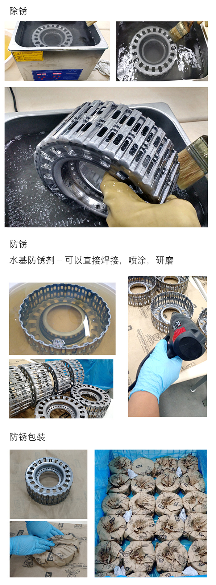 i) 將除銹合格的工件,取出,后,放入VCI水基防銹劑容器中,沒過液面;